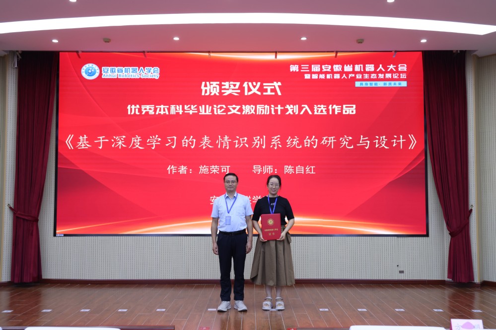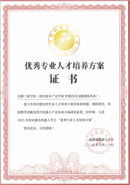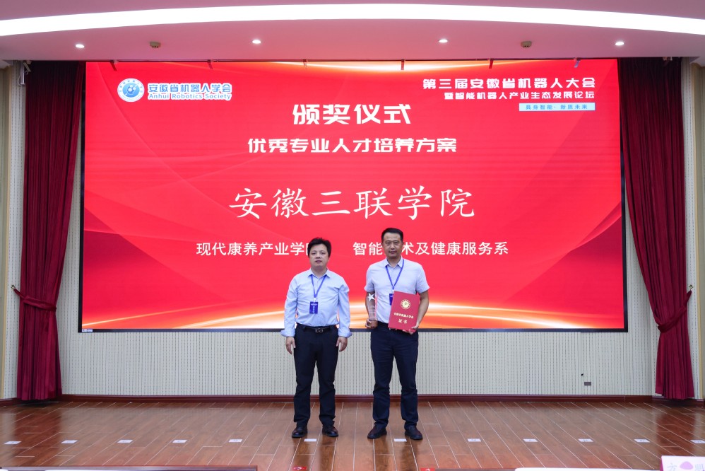 大会对在智能机器人相关领域教学、研究等方面表现突出的单位与个人进行表彰。现代康养产业学院智能技术及健康服务系以产业需求为导向优化育人体系:秉持 “理论筑基、实践赋能” 理念,通过大力强化实践教学环节,严格把控教学质量,全方位提升学生的创新能力与职业素养;在机器人工程专业率先开展 “场景化” 教学改革,模拟智慧康养场景组织教学,荣获 “优秀专业人才培养方案” 。同时,我院2025届机器人工程专业一名学生论文获评安徽省机器人学会优秀本科毕业论文。