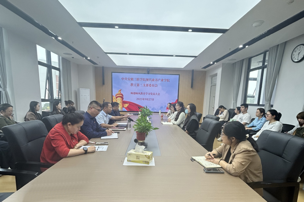 为落实立德树人根本任务,9月27日,现代康养产业学院教工第二党支部在康养1号楼202会议室召开师德师风教育学习会。会议由支部书记钱鹏主持,教工第二党支部全体党员参会。