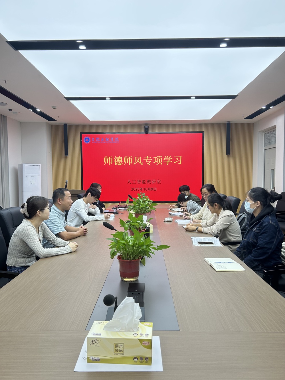 10月9日下午,人工智能教研室在1号楼202会议室召开“师德师风专项学习”会议,会议由教工第二党支部书记、教研室主任钱鹏主持,教研室全体教师参会。