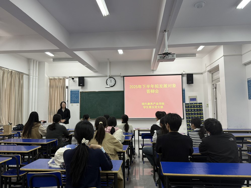 10月23日中午,现代康养产业学院党委统筹七支学生党支部,在康养2号楼教室同步开展2025年下半年党员发展对象答辩会,严把党员发展“入口关”。学院党委书记金华、党委副书记肖刚、党委委员赵利侠及各支部书记、辅导员组成评审组。