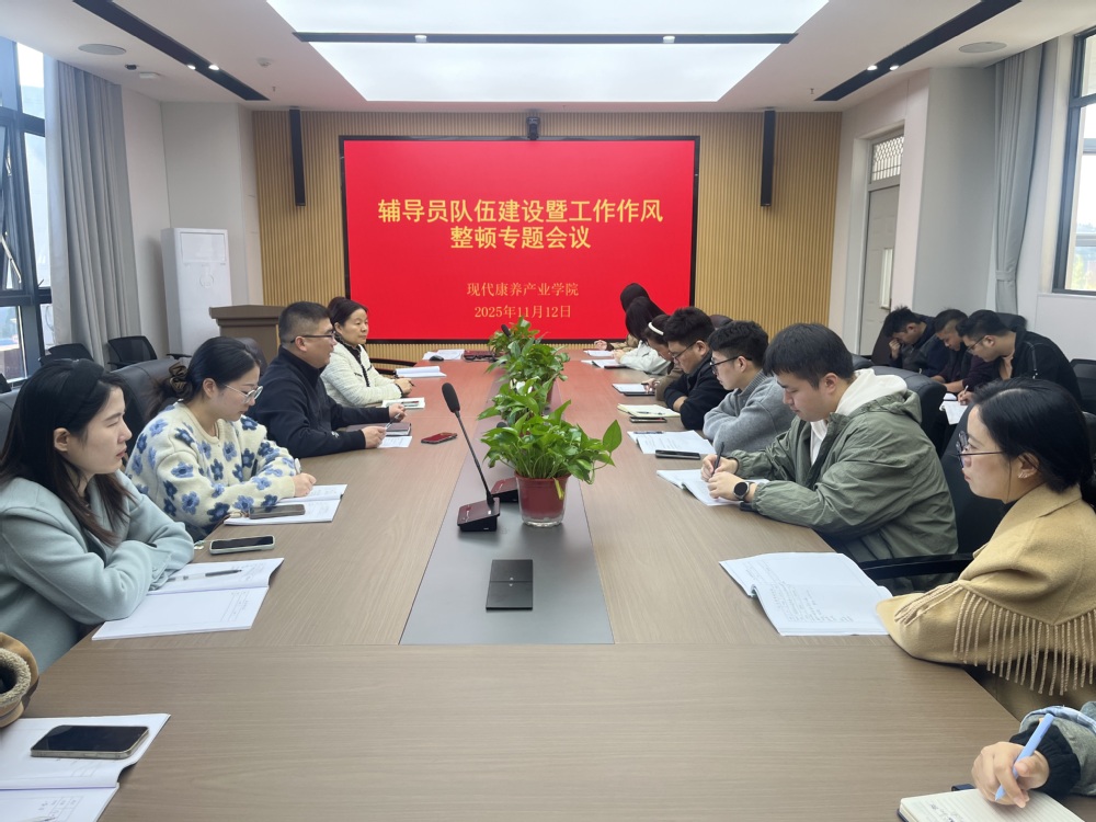 11月12日,学院在康养1号楼202会议室召开辅导员队伍建设暨工作作风整顿专题会议。学院党委副书记、护理系主任肖刚,学管主任赵利侠以及全体辅导员参加会议。