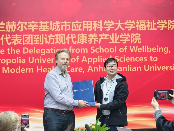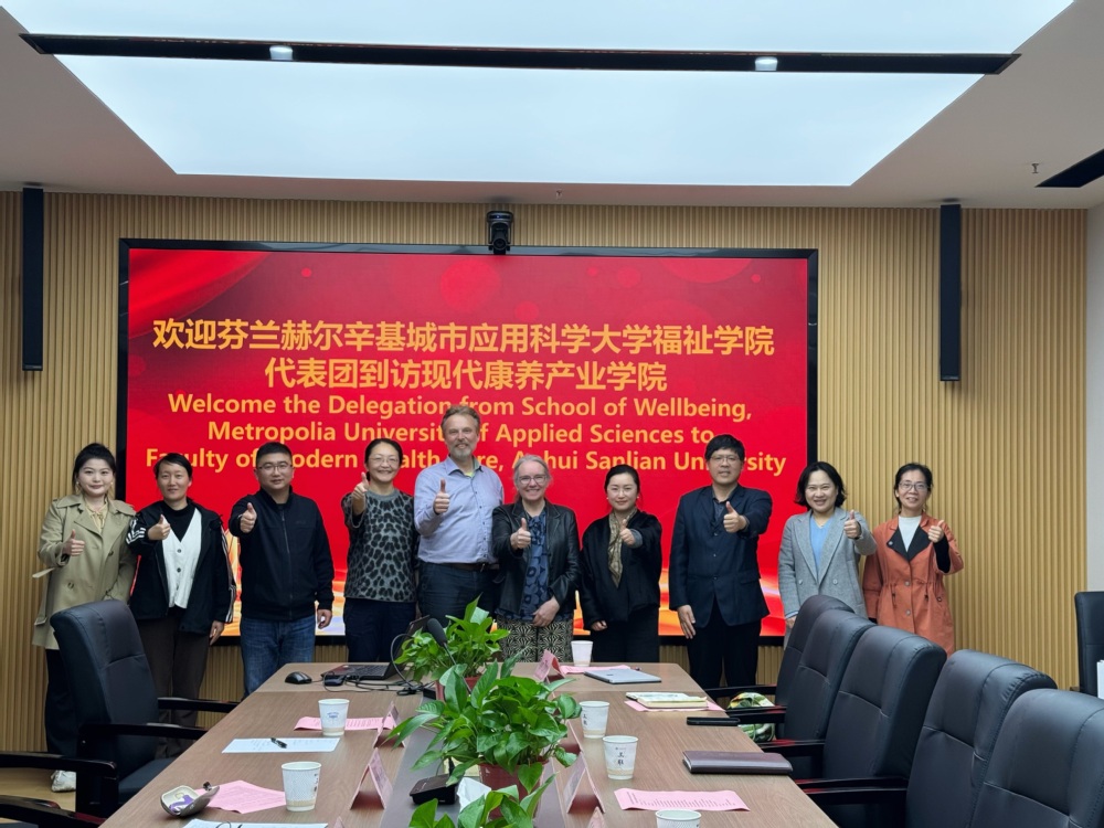 11月11日,芬兰赫尔辛基城市应用科学大学福祉学院健康技术专业带头人派维・哈霍一行来访我校。安徽三联学院国际交流合作中心负责人、现代康养产业学院副院长王兴接待来访客人。