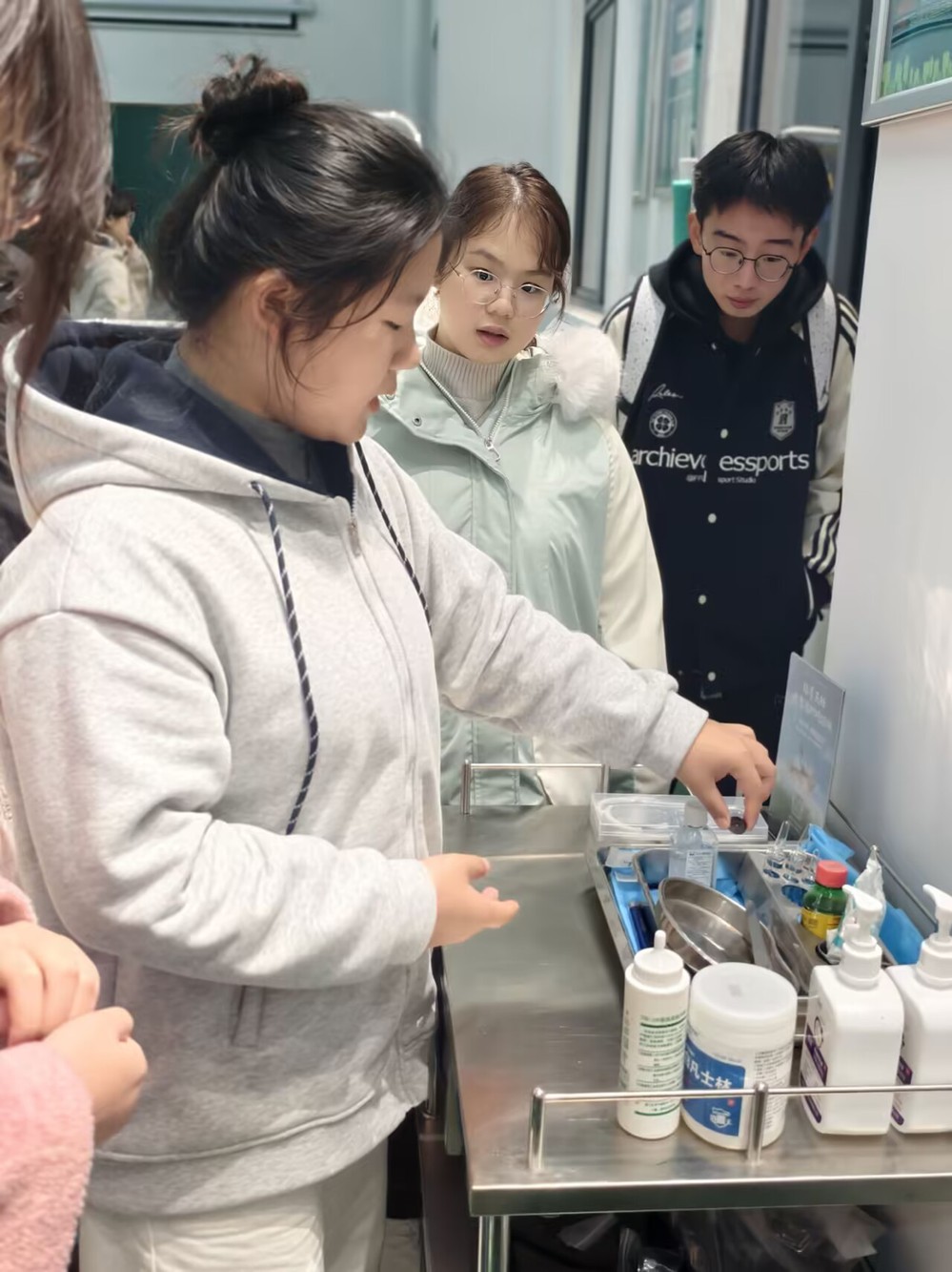 竞赛事业部副部长郑婷婷详细讲解了实验室安全准则、常用仪器设备的使用方法及本次学习的重点内容,从基础的生命体征测量、无菌操作规范到护理器械的识别与使用,逐一进行示范教学。同学们认真听讲、仔细记录,主动围绕操作要点进行提问,现场学习氛围浓厚。