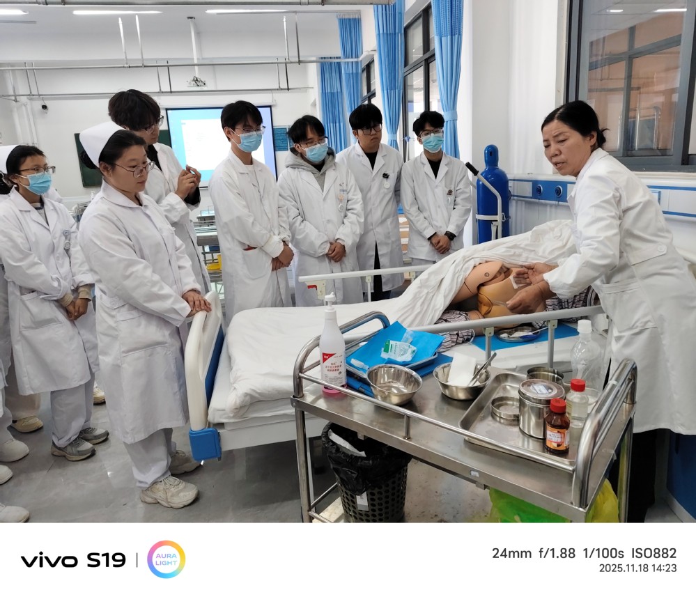 11月18日下午,护理学基础教研室开展《实用老年照护技术》集体备课。教研室全体教师集中观摩章道琴老师关于老人骶尾部压疮换药的规范化示教课,章道琴从评估、操作到沟通技巧全程演示,并结合实际案例解析护理难点,为教师提供了兼具规范性与实用性的教学参考。