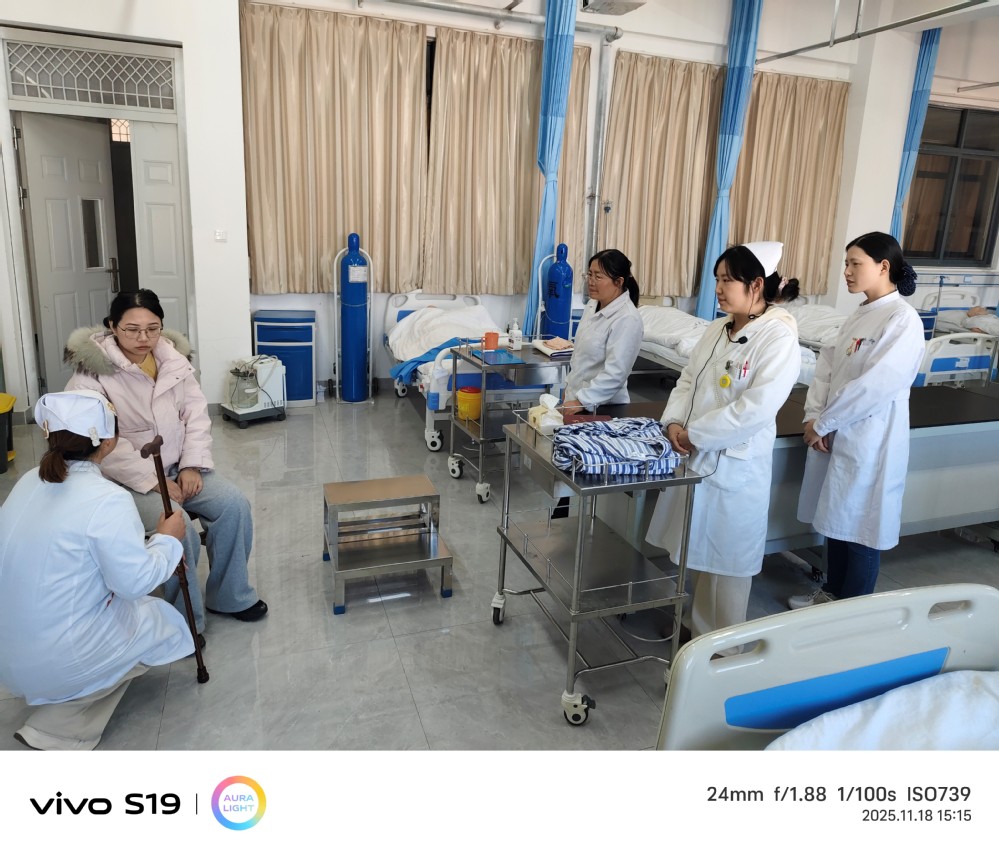 随后,老师们围绕示教内容展开研讨,并依次进行多项重点操作示教,如指导老人使用手杖、穿脱衣物等。大家针对教学中遇到的共性难题进行交流,统一了教学口径与操作流程,进一步规范了关键环节的教学标准。此外,课程组还就期末操作考核方案进行研讨,明确了考核项目、形式及评分标准,确定以情景模拟方式综合评价学生技能。
