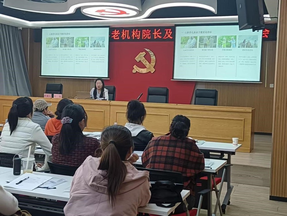 培训上半场由程悦主讲,围绕老年人生理心理特征、评估工具使用、老年人能力评估规范及政策法规展开系统讲解。她结合国内外最新研究和实践案例,详细介绍了老年人能力评估的核心指标,包括日常生活活动能力、认知功能、社会参与能力等标准化评估工具的应用,并对《老年人能力评估标准》等行业规范和政策进行了深度解读,帮助从业人员掌握科学规范的评估方法。