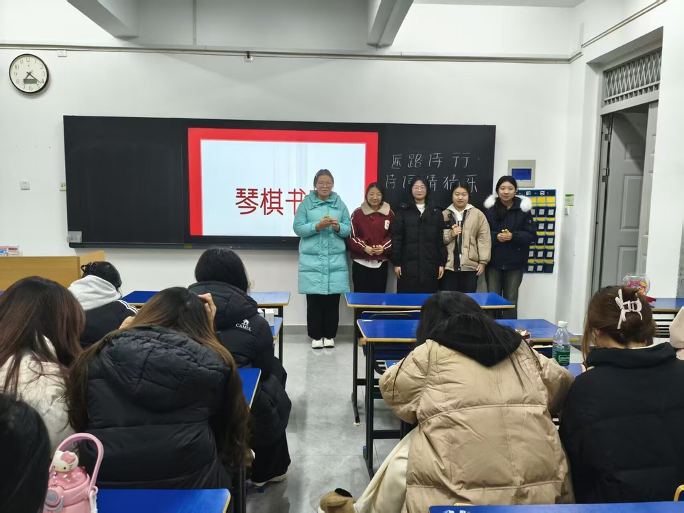 为丰富校园文化生活,推动传统诗词文化与医学专业教育深度融合,现代康养产业学院2025级本科护理学对口班于近日在307教室举办《医路诗行·诗词猜猜乐》主题活动。活动通过展示医学相关图片,引导同学们联想对应诗词,现场互动踊跃,气氛热烈。经过激烈角逐,班级最终评选出“诗词达人”,并颁发奖品。此次活动既展现了同学们扎实的诗词功底与专业素养,也进一步丰富了班级课余文化生活,增强了文化认同感。