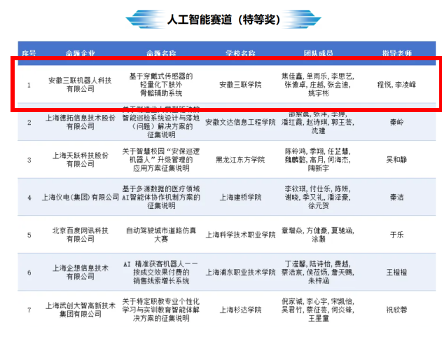 首届“杉达杯”民办高校和职业院校产教融合创新创意大赛获奖名单正式公布。我院焦佳鑫团队与安徽三联机器人科技有限公司合作,凭借参赛项目《基于穿戴式传感器的轻量化下肢外骨骼辅助系统》,在人工智能赛道脱颖而出,成功斩获大赛特等奖。