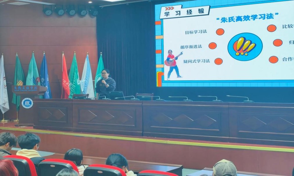 随后,学院优秀学生代表朱子慧、张弛、涂杨德依次登台,结合自身经历分享了宝贵的成长经验。