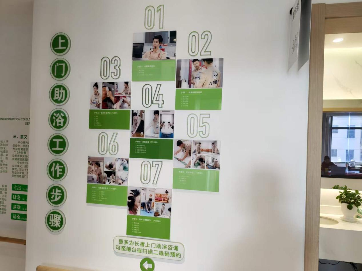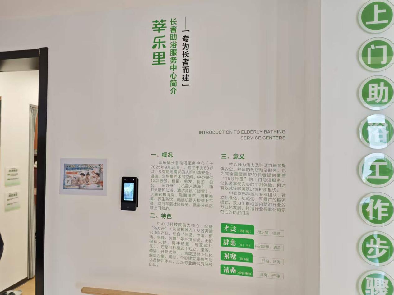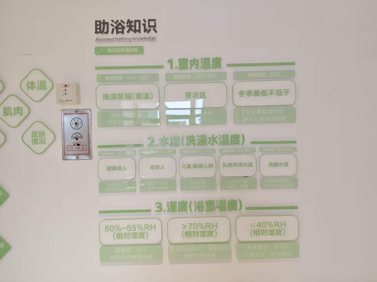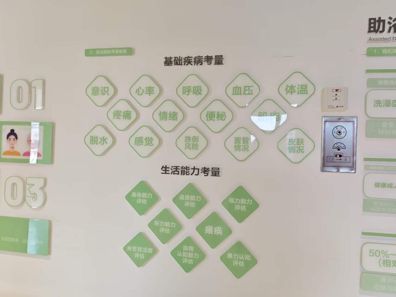 智能助浴设备:配备 “浴方舟” 洗澡机器人,老人自主操作即可完成 7 分钟全流程助浴,含洗头、抓背等功能,空间采用无痕系统无风感,避免老人着凉;日均服务自理、半自理老人十余位,解决周边老旧小区家庭洗浴条件不足的问题。